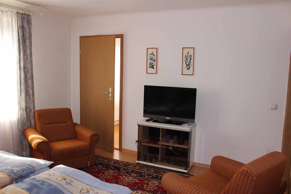 Das Wohnzimmer verfügt über ein TV Gerät und ein Radio.
